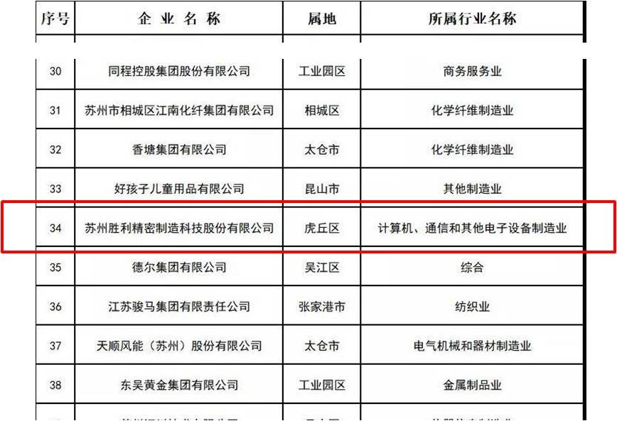 开云手机平台名列“2021苏州民营企业100强”第34位
