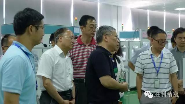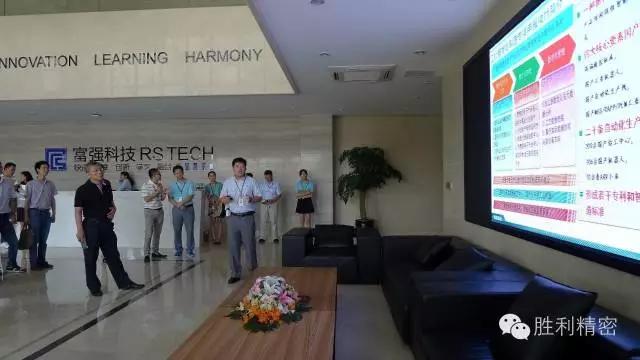 随后一行人参观了全资子公司富强科技,由富强科技吴加富总经理介绍了富强科技的发展情况、智能制造在国内发展的进程以及企业未来的布局规划,并参观了高度智能化的展厅和生产车间。领导一行对富强科技展示的智能化装备表现了浓厚的兴趣,对自主研发的高速加工中心和现有的自动化检测设备能力、自动化组装线研发等先进的技术和生产能力予以了充分的肯定。