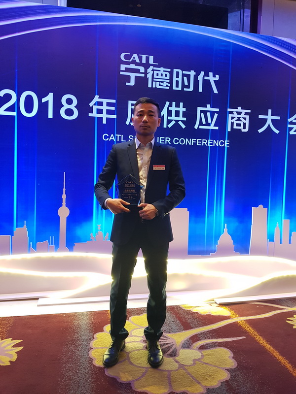 2018年12月22日,宁德时代新能源科技股份有限公司年度供应商大会,在宁德隆重举行,此次供应商大会仅颁发两个品质优秀奖,开云手机平台子公司苏州捷力新能源材料有限公司获此殊荣,且是隔膜供货商中的唯一获奖者。