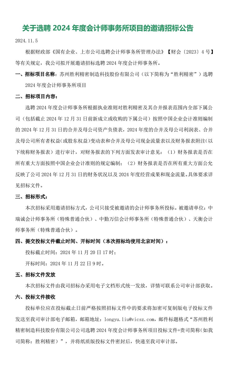 关于选聘2024年度会计师事务所项目的邀请招标公告